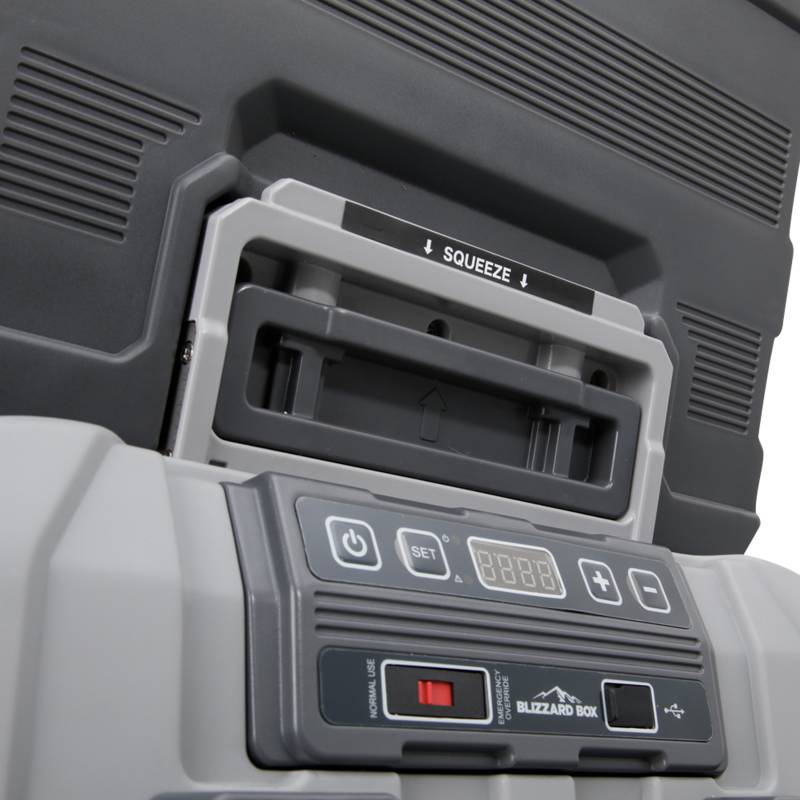 Need a bit more space than the 41QT offers? The 56QT is perfect for those who wont compromise due to space. Take those snacks, no one's judging. From overlanding and camping to hunting and beyond, Blizzard Box is the portable iceless cooler that takes your adventures to the next level. While built for rugged outdoor expeditions, our fridge freezers are also perfect for grocery runs, tailgating, family-events and road trips in your car, truck, SUV, UTV or RV.At Blizzard Box we know theres nothing quite like the of feeling off-roading, being off the grid and surrounded by nature. Blizzard Box refrigerator freezer coolers are built to withstand the rigors of the trail, the road and the great unknown, making them indispensable gear for any adventure.What sets a Blizzard Box fridge/freezer apart from a traditional ice chest? A lot, the biggest difference is ice well, the lack of. Our coolers are completely iceless, and function as a portable refrigerator or freezer, which offers a ton of advantages. No ice means 50% more usable space. Precisely set your temperature with our digital thermostat allowing you to set an exact temperature anywhere between 50 Degrees F down to 0 Degrees F.Beyond food and drinks, our portable fridges are also packed with handy features that bring smart convenience to any journey. Our 12V fridge freezers run on AC and DC power, so they can go anywhere you do. Plus the built-in USB port lets you charge all your devices with ease. Our refrigerators are even designed to operate intelligently to avoid over-draining your vehicle's battery?so the adventure can go on and on. We offer 5 different sizes: The 13- & 22- are prefect compact units to simulate or replace your center console. Our 41-, 56-, and 99QT fridges offer versatile doors that open for either side and boast interior lighting for increased visibility in dark spaces.Whatever your adventure is, it needs a Blizzard Box.