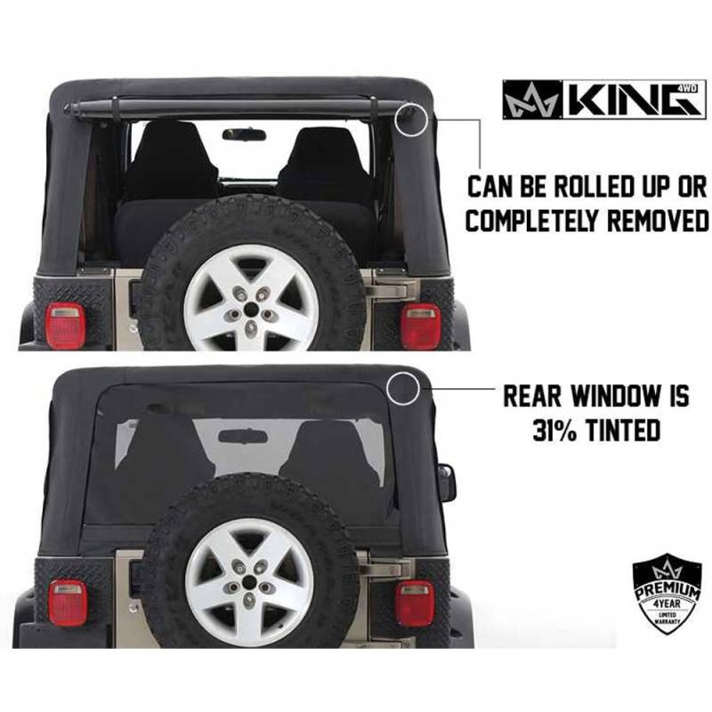 King 4wd 14010235 Soft Top w/Tinted Windows No Doors for 97-06 Wrangler TJ Black