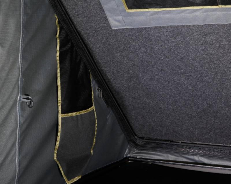 The Mamba III Roof Top Tent also comes with 1 Adjustable Interior Pop-Up Strut for additional support for when weight has been added to the cross bars. The Mamba III Roof Top Tent has a clean, rugged, durable, sleek and an aerodynamic design compared to traditional Roof Top Tents.