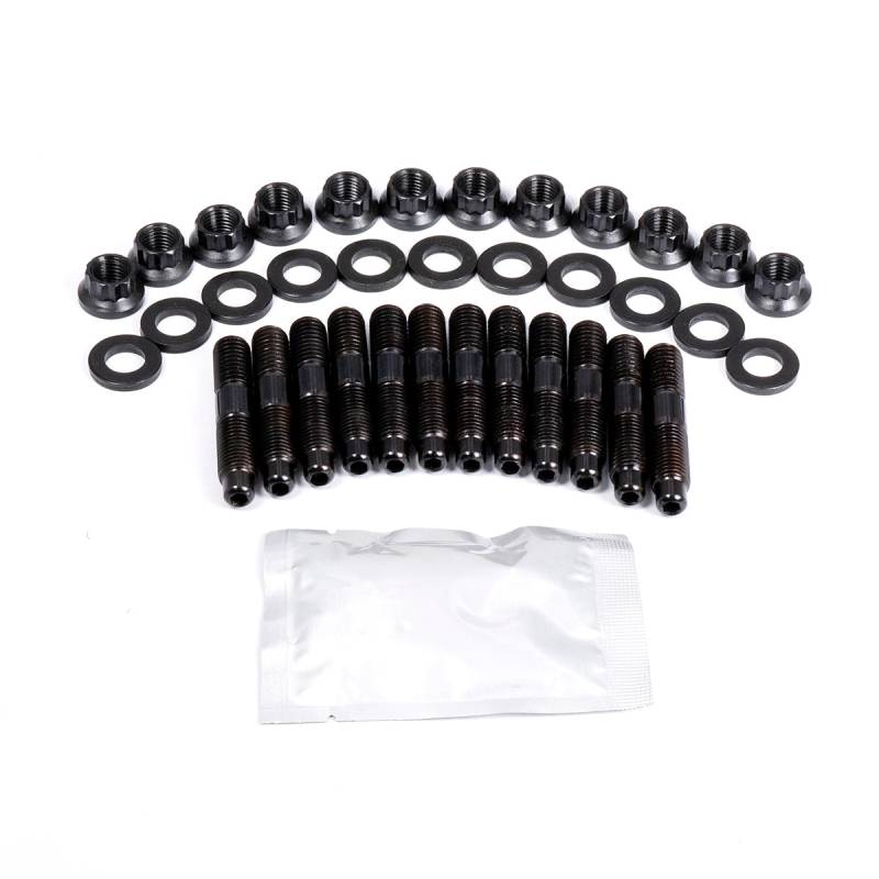 Each PPE Manifold Stud is centerless ground and rolled with extreme precision, reducing stress concentrations, and increasing durability. The use of studs and nuts allows for precise torque reading and more even load distribution. This kit comes with 12-point flange nuts. All fasteners have a black oxide finish.