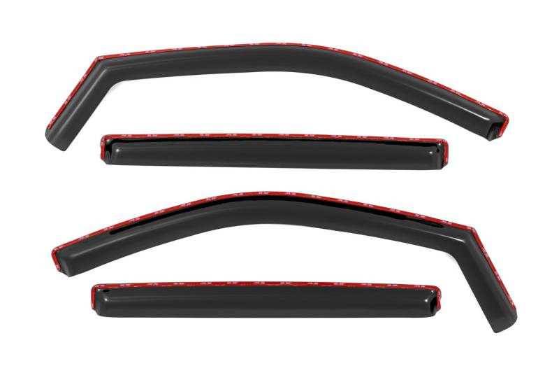 Upgrade your driving comfort with Rough Country's premium in-channel wind deflectors, designed for easy installation and exceptional performance. They fit seamlessly into your vehicle's window channels maintaining a sleek profile while letting you enjoy fresh air in any weather. Say goodbye to noisy wind and turbulence for a quieter cabin on city commutes or road trips. Our deflectors reduce glare and keep your interior dry with windows cracked open. They blend seamlessly with your vehicle's design for a stylish look and are custom-made for a perfect fit and reliable performance, ensuring every drive is comfortable and enjoyable.