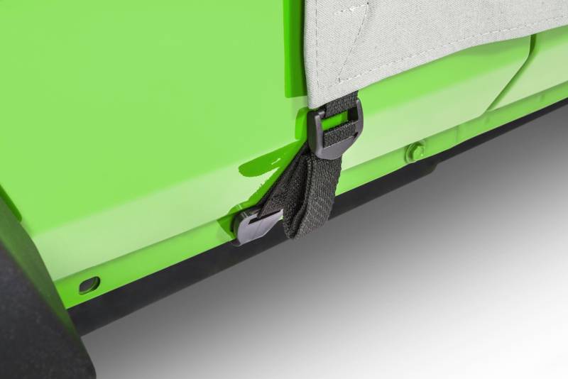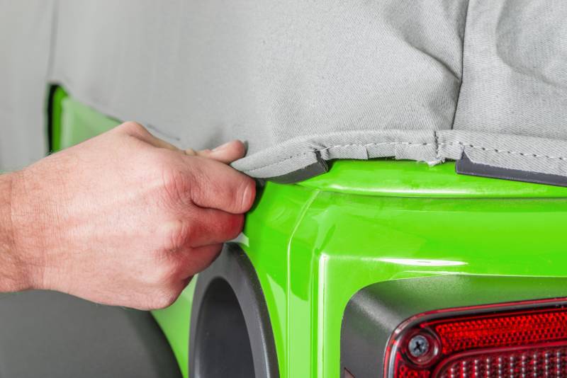 Each cab cover has a long panel on each side of the cover that protects the door opening from water and debris when the doors are removed and the cover is installed. The light gray color reflects sun and keeps the interior of your Jeep cool.