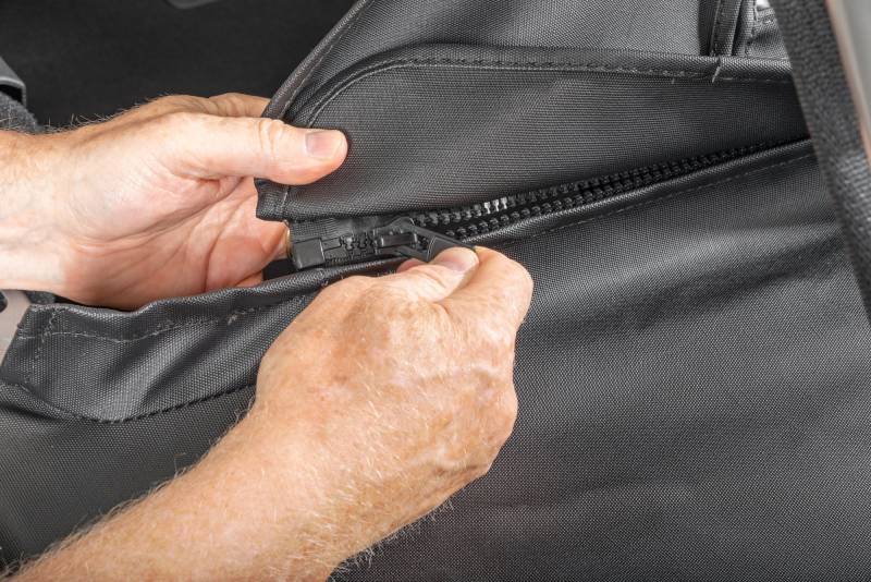 Note: Though this cover is made of waterproof materials, it is not waterproof. Water can enter the cab in-between the roll bar sleeves, through the rear of the vehicle as well as possible water flow