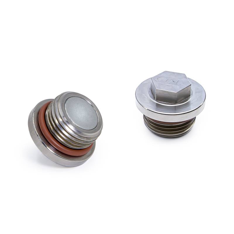 - Billet stainless steel, 17mm hex, Neodymium-equipped drain plug