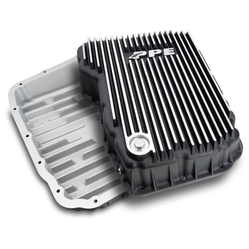 PPEs new flat-bottom transmission pan for the Ram 68RFE transmission is constructed from high-quality cast aluminum. This pan features internal heat sinks and external cooling fins. These cooling fins, combined with the increased capacity aluminum construction, promote reduced transmission fluid temperatures. The cooler fluid lubricates better which helps increase transmission service life.