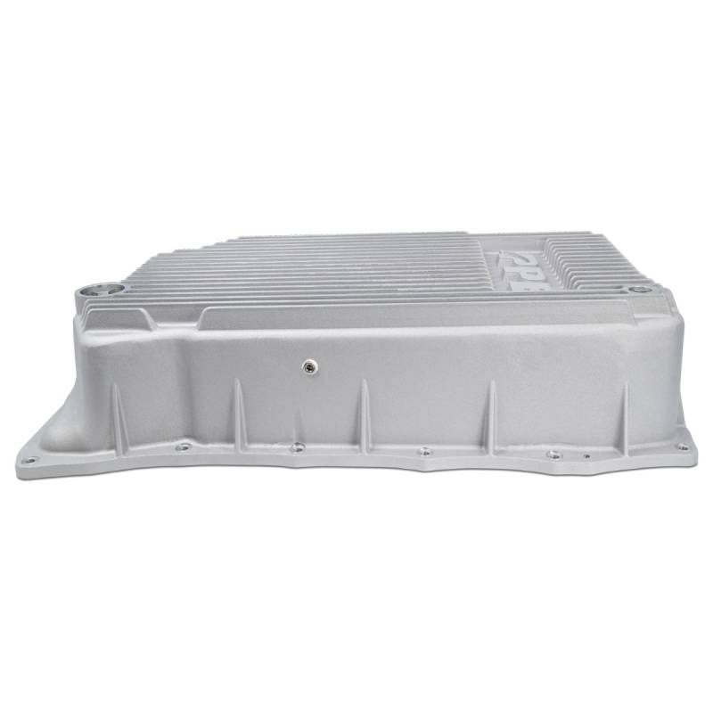 The Deep PPE Pan Increases fluid capacity by a full gallon which lowers transmission fluid temperature and increases thermal stamina. The engineered design includes cast aluminum fins and heats sinks to improve heat dissipation. The external gussets provide extra support to the machined flange to increase overall robustness.
