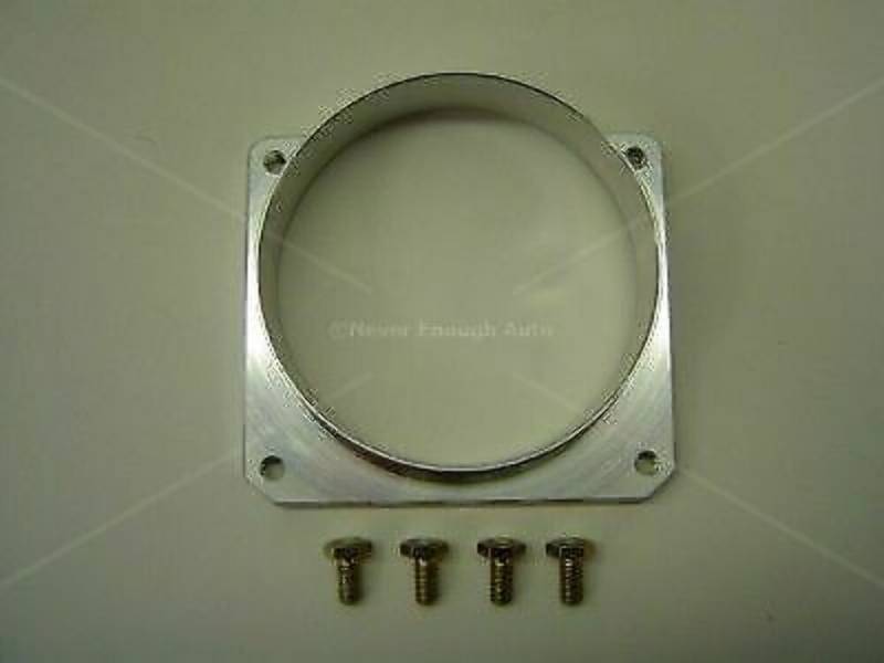 This adapter is precision-machined from billet aluminum and is designed to adapt the Ford 90mm Mass Air Flow sensor to any filter element or air intake with a 4" inlet. The adapter is simple to install and includes the four Grade 8 fasteners needed to attach the adapter to the MAF housing. This adapter works with the high performance conical air filter elements also listed in this section.