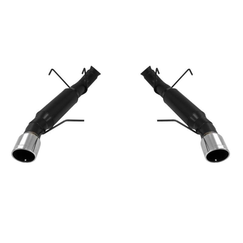 This Flowmaster® Outlaw Axle-back exhaust system is specifically designed for 2013-2014 Ford Mustang GT 5.0L coupes and convertibles. The system features a pair of race proven Outlaw® mufflers for an aggressive exterior sound level with a moderate interior sound level. Features include 2.50-inch connections for an easy fit to the stock mid-pipe then the inlets quickly expand to full 3.00-inch mandrel-bent inlet tubing leading into a pair of Outlaw mufflers for maximum performance. The system is supported from the factory hanger locations for an easy and hassle free installation that can be done at home and is finished off with a pair of large 4.00-inch polished stainless steel tips for that performance look and sound that you've come to expect from Flowmaster.