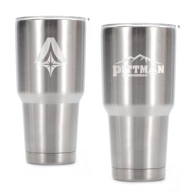 Pittman Outdoors 20oz. Hydration Tumbler - Stainless Steel Our 20 oz / .59 L Pittman Outdoors double wall vacuum insulated tumblers are constructed from 18/8 kitchen grade stainless steel. The tapered bottom easily fits most cupholders. BPA free, they are perfect for keeping you hydrated all day. Constructed from rust resistant kitchen grade 18/8 stainless steel Double wall vacuum insulation keeps your hot drinks hot and your cold drinks cold Tapered to fit most cupholders BPA free Hand wash only